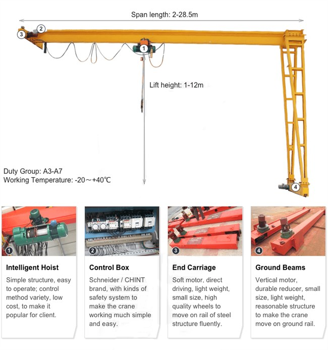 Semi Portal Crane could be used in outdoor or indoor warehouse for loading and unloading. Water-proof cloth is needed in out door operation. Saving the investment and space, with reasonable structure, favorable performance, easy installation, reliable traveling, and convenient maintenance, strong ability of lateral load proof, etc.